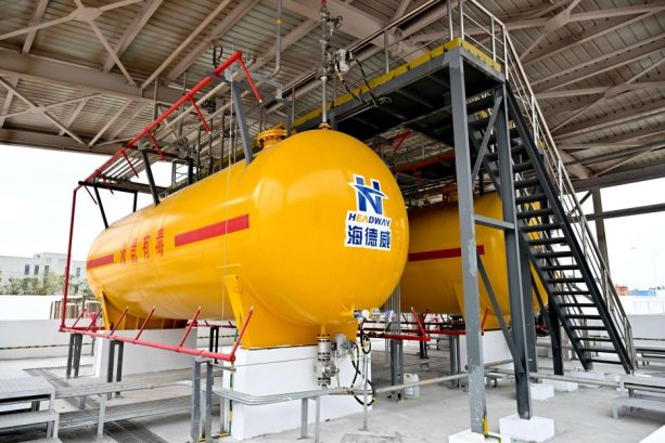 據(jù)悉,海德威此次作為項目總包方,以“交鑰匙”工程模式承擔(dān)了氨燃料供給系統(tǒng)的整體設(shè)計、核心裝備集成及工程化交付工作,構(gòu)建了覆蓋燃料儲運、調(diào)節(jié)控制、安全管理及運行支持的完整系統(tǒng)解決方案,提供涵蓋氨燃料儲罐、氨燃料供給模塊、卸車壓縮機、氨燃料輸送泵、氨氣相處理系統(tǒng)、可燃?xì)怏w探測及雙壁管在內(nèi)的整套全流程定制化解決方案。作為面向?qū)嵈瑧?yīng)用的重要平臺型項目,該測試平臺嚴(yán)格按照船用產(chǎn)品標(biāo)準(zhǔn)設(shè)計建造并滿足陸地驗收要求,海德威在其中的角色不是單一配套商,而是圍繞平臺運行目標(biāo)進(jìn)行系統(tǒng)拆解、接口統(tǒng)籌、模塊集成和工程交付的組織者。