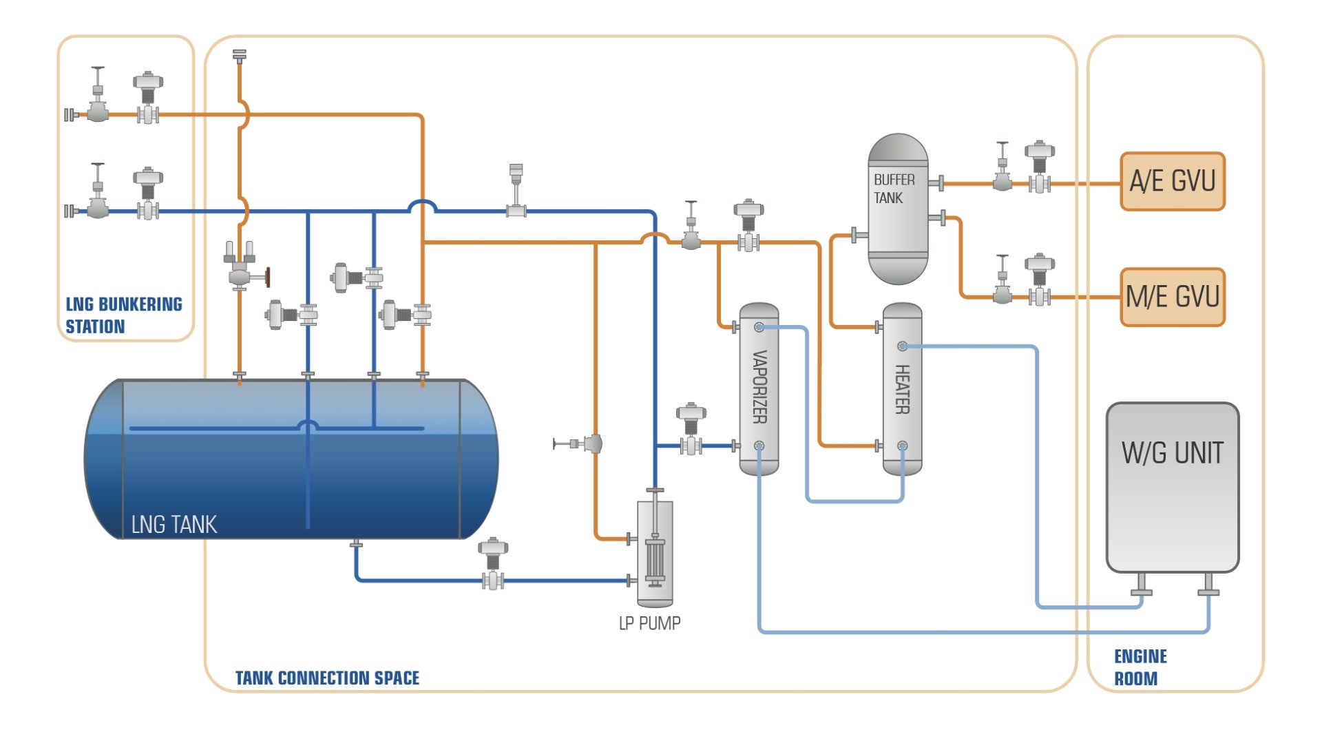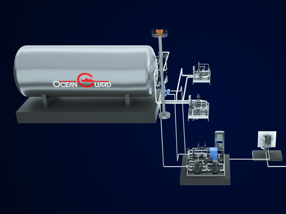 海洋衛(wèi)士?船用LNG供氣系統(tǒng)為客戶提供一站式的完整解決方案,系統(tǒng)集成范圍包括燃料加注、燃氣儲存、燃氣處理、進機前調(diào)節(jié)等主要配置,以及氮氣吹掃、輔助加熱、干粉消防等供氣輔助系統(tǒng)。